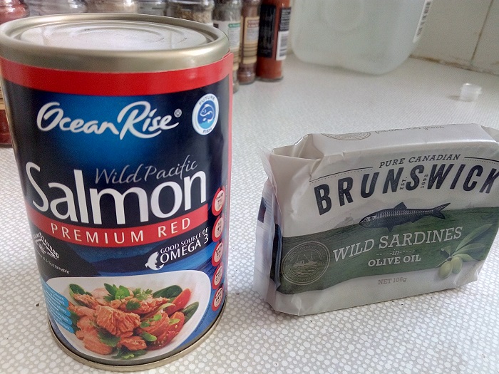 So what fish to eat? Unless you find fresh wild caught and non shell fish – you have to go for canned variety of sardines and salmon however get the ‘wild caught’ where sardines I found are Canadian wild caught and Salmon is Alaskan wild caught premium red salmon, see the video here.